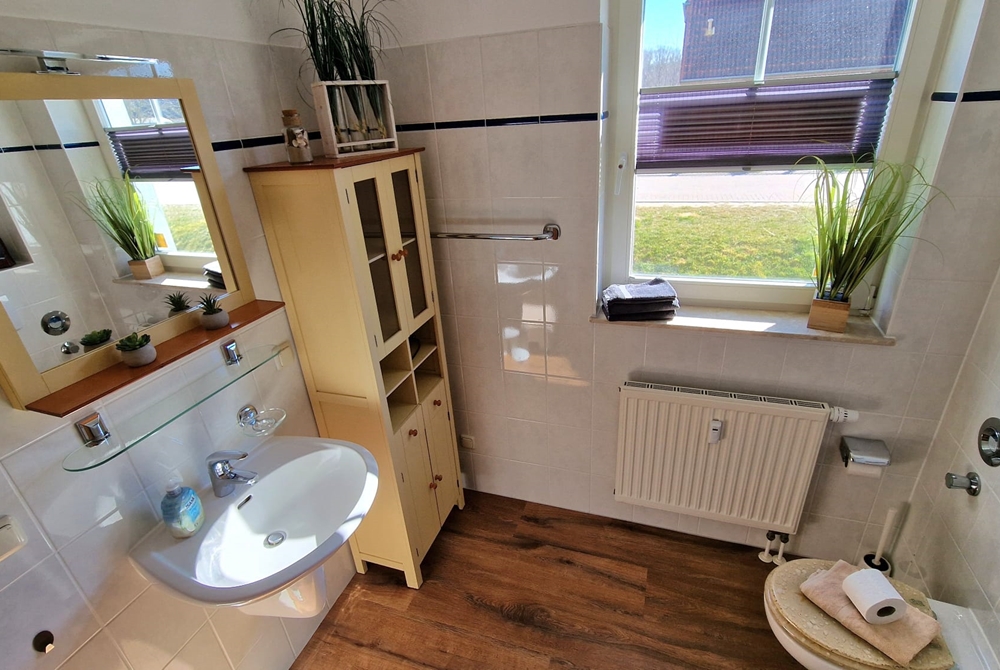 - Helles Badezimmer mit Dusche, WC und Fenster