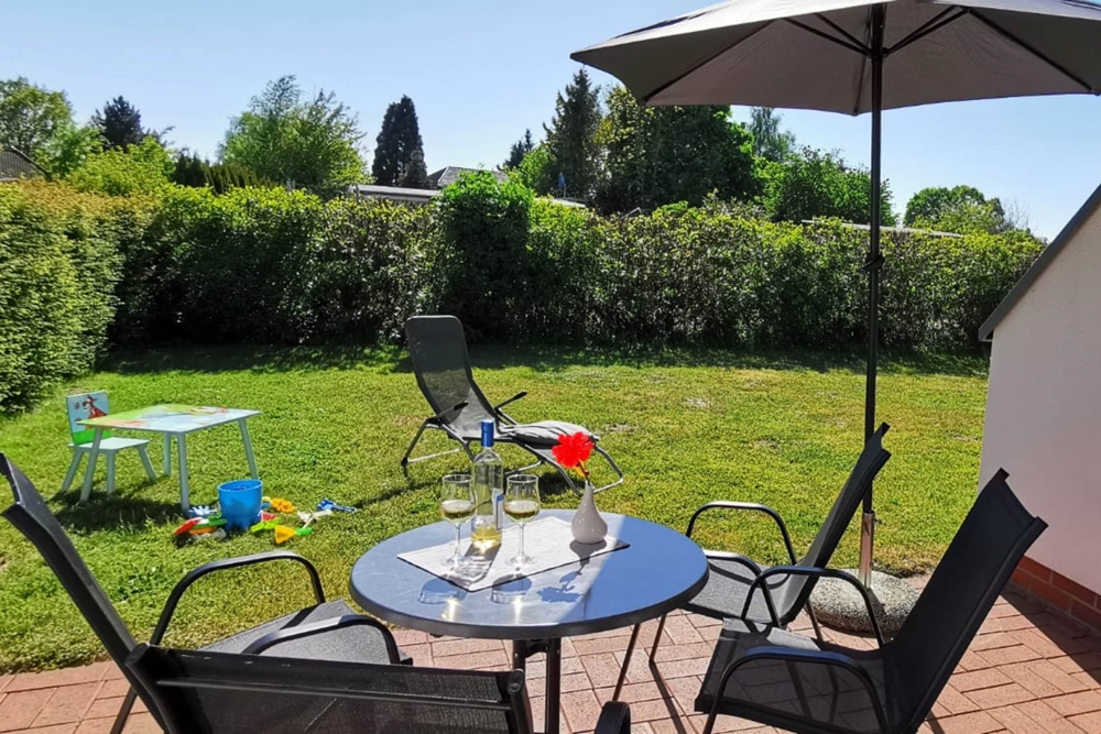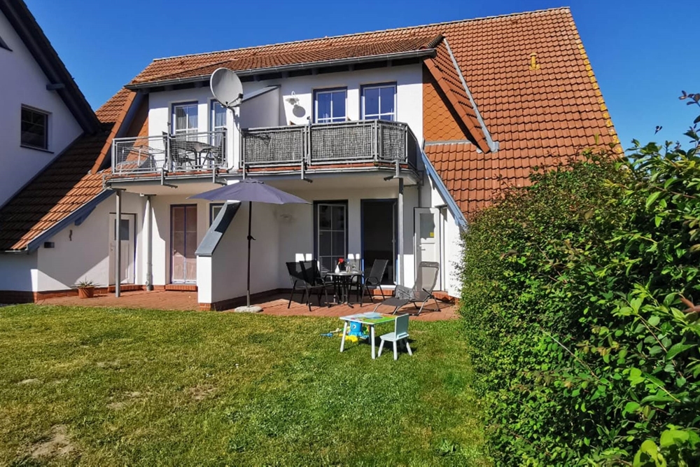 Mittendrin und doch noch fußläufig vom Usedomer Ostseestrand entfernt befindet sich das ruhig gelegene Ferienapartment "Strandläufer" abseits der belebteren Touristenpfade in Karlshagen. Die Ausrichtung der Terrasse nach Süden ermöglicht ein sonniges Frühstück und das Glas Wein im gemütlichen Abendlicht an der frischen Ostseeluft. Mit nur einem Schritt hinaus aus dem großzügigen Wohnzimmer befinden Sie sich bereits „im Grünen“. Das angrenzende Rasengrundstück (umrandet mit einer Hecke) bietet Privatsphäre und lädt auf dem gemütlichen Mobiliar zum Entspannen ein. Das treppenlose Apartment Strandläufer im Erdgeschoss bietet zwei separate Schlafzimmer und ist besonders bei Familien beliebt: Ein „Elternschlafzimmer“ mit Doppelbett (180x200) und das zweite Schlafzimmer mit einem Bett (90 x 200) liegt gleich nebenan. In der gemütlichen und praktisch eingerichteten Küche lädt ein großer Esstisch zu Spielrunden am Abend ein und die bequeme große Couch im offenen Wohnzimmerbereich lässt sich für den TV-Abend auch ausziehen. Sie bietet zudem eine weitere Schlafmöglichkeit für eine weitere Person. Auf dem Grundstück befinden sich weitere Ferienwohnungen. Ein gemeinsamer Grillplatz und ein größeres Rasenstück zum Ballspiel oder Badminton sind ein weiteres Plus der Wohnung. Ein abschließbares Holzhäuschen für mitgebrachte Fahrräder ( Gemeinschaftsraum - keine Garantie auf einen Fahrradplatz, es existieren aber auch Fahrradständer vor der Unterkunft) sowie ein separierter, dem Apartment zugeordneter, kostenloser PKW-Stellplatz sind ein weiteres PLUS unserer Ostsee Ferienwohnung.